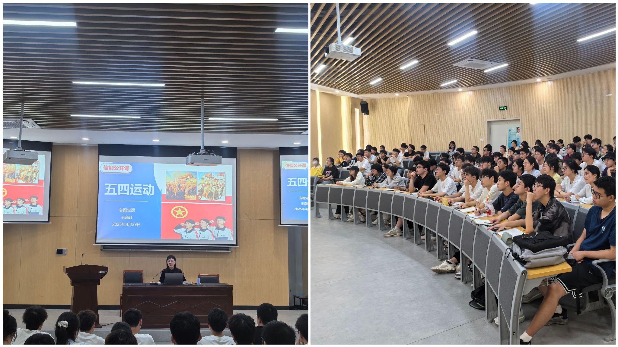 信仰公开课筑牢思想之基。“五四运动的历时特点和意义是什么?是青年对民族觉醒的呐喊!”学院党委书记王晓红为全院120余名学生讲授《五四运动》专题公开课,通过回顾五四运动的历史脉络,以“南陈北李”的革命故事以及当代青年科技报国的典型案例,结合党的二十大对青年的期望,深入阐释新时代青年的使命担当。